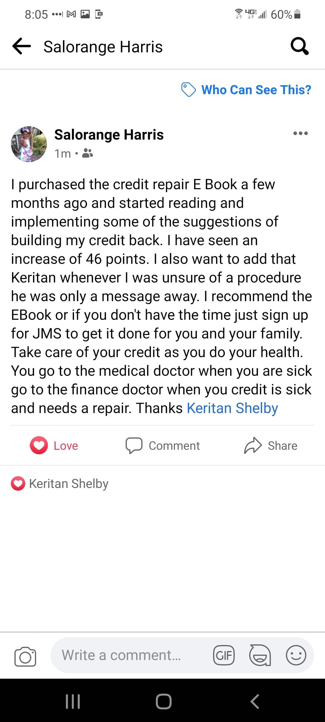 I have the benefit of investing over $100k+ and screwing up my credit years ago, but mastering all of those nuances, I ended up creating JMS Consulting Firm which is my credit repair and business credit company.